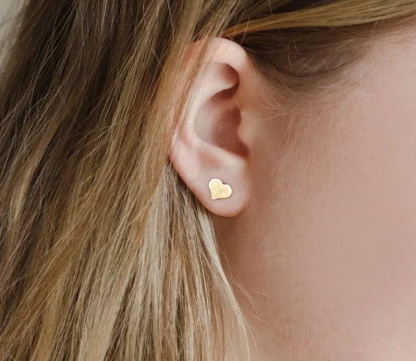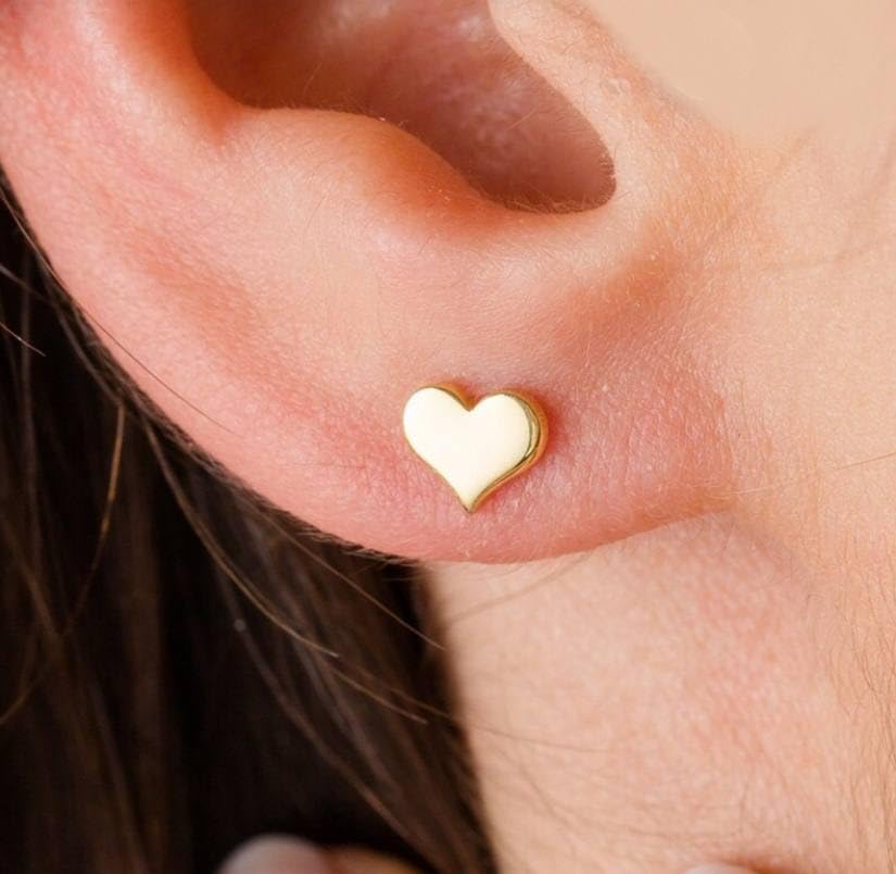 Generic - حلق صغير بريمة كلاسيكي بسيط على شكل قلب جميل بلون ذهبي للنساء والفتيات مجوهرات الزفاف، معدن