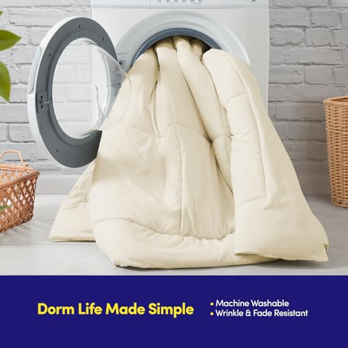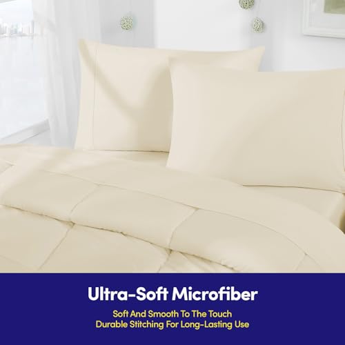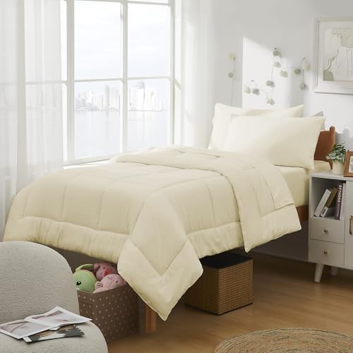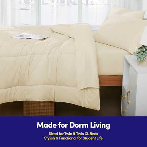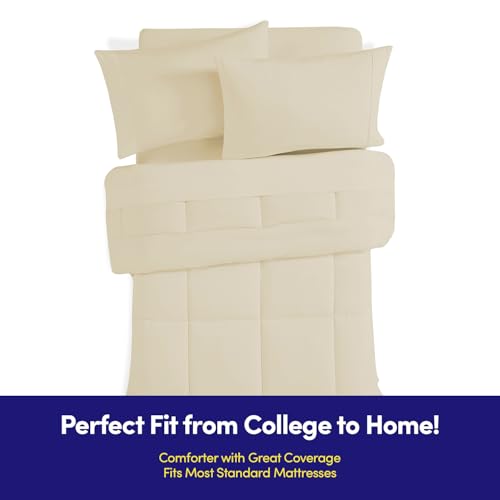 Sweet Home Collection - طقم لحاف اسنشيالز لغرف النوم من 7 قطع بمقاس كامل في شنطة لطلاب الجامعات الاولاد والبنات مقاس كريمي/بيج سويت هوم كوليكشن البوليستر