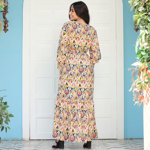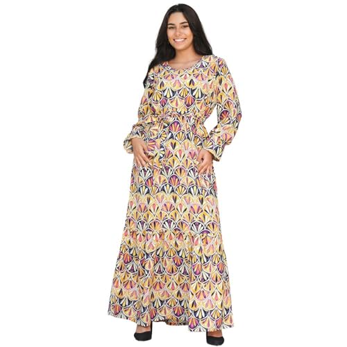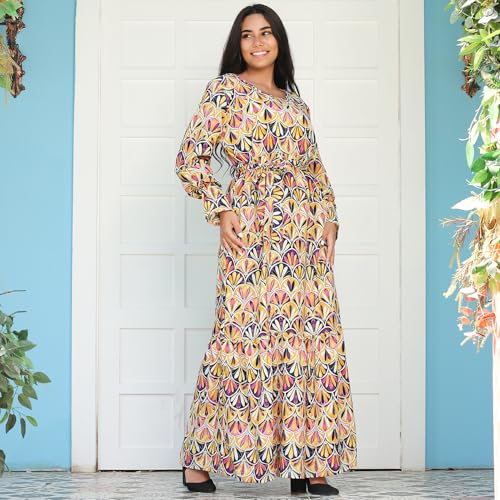 FRIDAYIN - Sweet Round neck Geometry Printing Belt Flared sleeve Long Dresses
