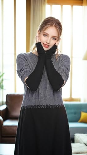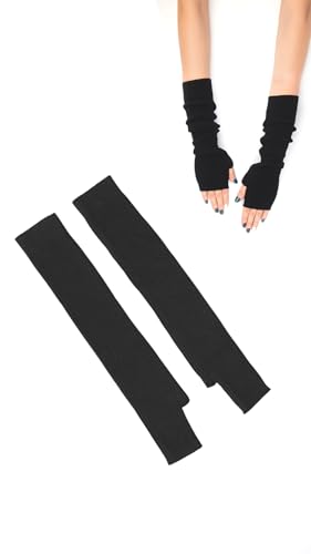 Sweet seven - قفازات تدفئة الذراع المخلوطة من الكشمير من سويت سيفين - قفازات شتوية بدون اصابع مع فتحة للابهام للنساء (زوج واحد)، اسود، مقاس واحد