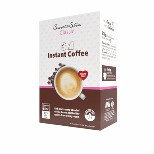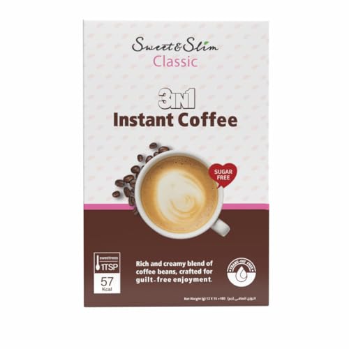 Sweet&Slim - قهوة سريعة التحضير 3 في 1 خالية من السكر من سويت اند سليم - صندوق كلاسيكي (12 كيس)