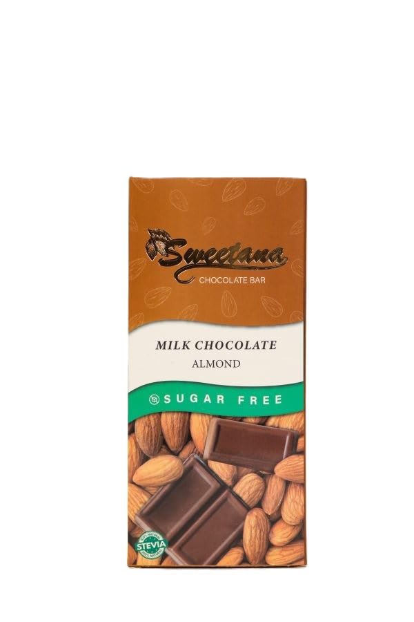 Sweetana - بار شوكولاتة باللبن واللوز من سويتانا خالي من السكر، 90 جم