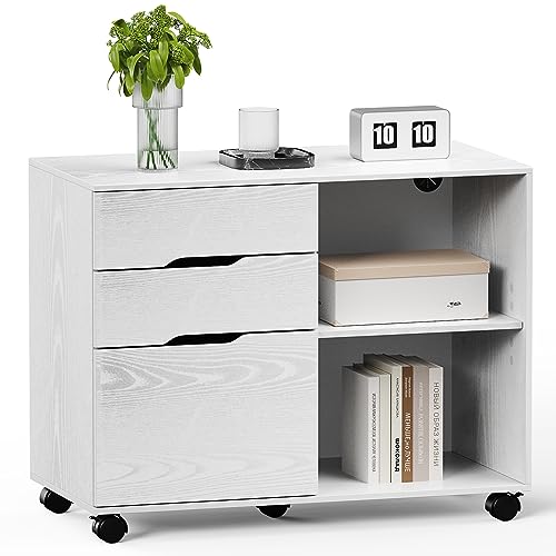Sweetcrispy - خزانة ملفات بـ3 ادراج من سويت كرسبي - خزائن ملفات للمنزل والمكتب، حامل طابعة متنقل مع مساحة تخزين جانبية، خزانة مكتب خشبية بعجلات وارفف تخزين مفتوحة للغرفة، مساحة صغيرة