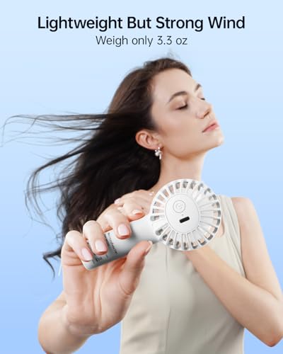 - 【حجم الجيب لأخذها في كل مكان】تزن المروحة المحمولة باليد 92 جرام فقط. تتميز المروحة الصغيرة بحجم صغير يمكن أن يناسب أي شنطة يد تقريبًا. يمكنك إخراجها عندما تواجه سخونة مفاجئة.