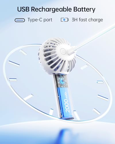 - 【 سهلة الحمل وتصميم لطيف】المروحة المحمولة ذات الحجم المناسب ومادة ABS تجعل المروحة المحمولة باليد سهلة الحمل. لطيف يجب اقتناؤه لأيام الصيف الحارة. اشتري واحدة من أجلك الحلو!