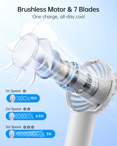 - 【3-10 ساعات تشغيل وقابلة لإعادة الشحن】بطارية قابلة لإعادة الشحن 2000 ميلي امبير في الساعة تجعل المروحة الصغيرة شريكًا مثاليًا للصيف. 3 ساعات من الشحن يمكن أن يدوم من 3 إلى 10 ساعات.