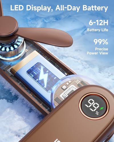 - [6-12 ساعة تشغيل وشاشة LED] تتميز هذه المروحة الصغيرة ببطارية قابلة لإعادة الشحن، مما يوفر وقت تشغيل طويل ومراقبة مستوى البطارية في الوقت الفعلي من خلال شاشة LED - هدية مثالية للفتيات والأمهات والنساء.