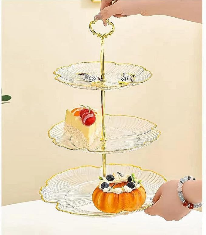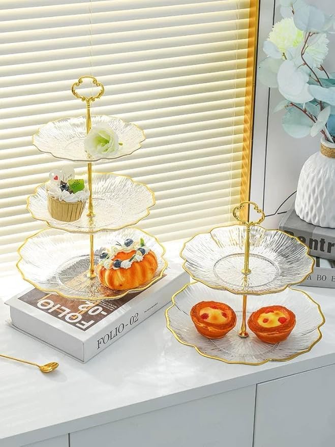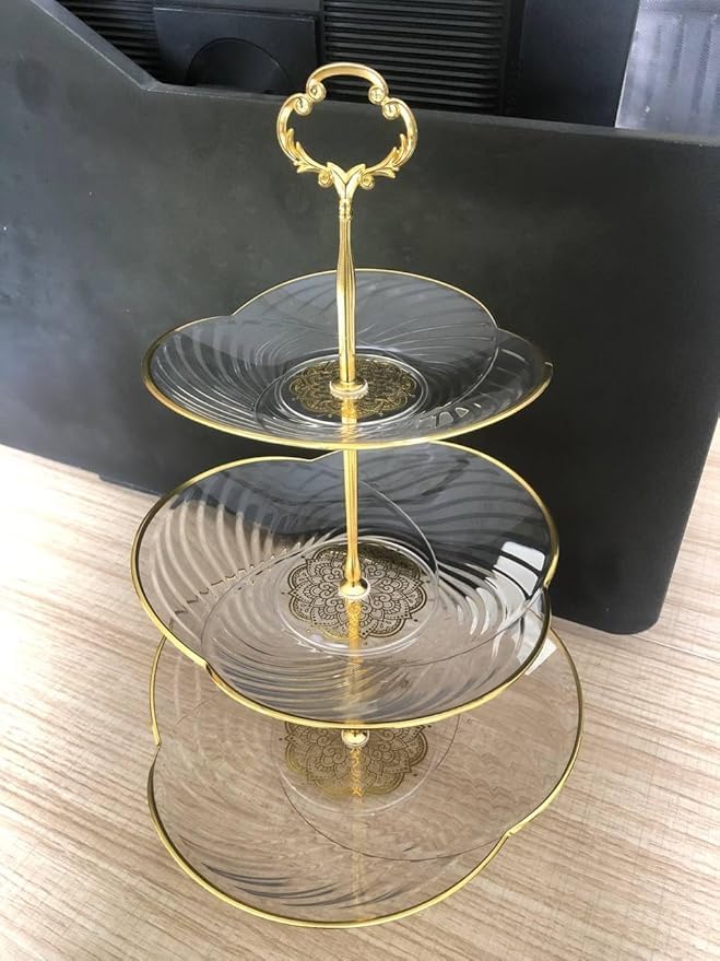 - مزايا فاخرة: مقبض ذهبي مزخرف وقضيب دعم مركزي قوي يكمل تصميم النمط الملتف لكل طبقة تقديم