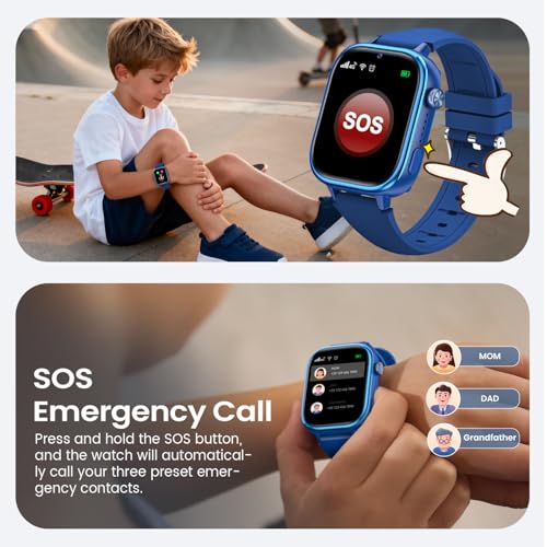 SWGOTA - ساعة ذكية للاطفال 4G من سوجوتا، ساعة ذكية للاطفال مع نظام تحديد المواقع الجغرافية ومكالمات الفيديو والدردشة الصوتية ووظيفة الطوارئ ووضع المدرسة، تصنيف IP68 وكاميرا ومنبه وعداد خطوات ومراقب النوم، هدية