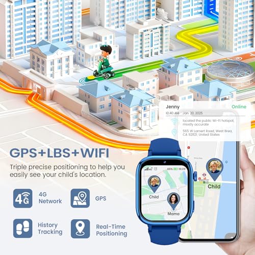 - 【مكالمات فيديو الجيل الرابع】تدعم الساعة الذكية للأطفال المزودة بنظام تحديد المواقع والمكالمات شبكات الجيل الرابع، مما يسمح بمكالمات صوتية مستقرة ومكالمات فيديو واضحة للغاية. كما أنه يحتوي على ميزات الدردشة النصية وخيارات الاتصال الأخرى، حتى تتمكن من مشاركة اللحظات اليومية مع طفلك وتعزيز الروابط العائلية. يمكنك أيضًا إعداد قائمة بيضاء بجهات الاتصال المسموح بها، مما يخلق بيئة اتصال آمنة ونظيفة لطفلك.