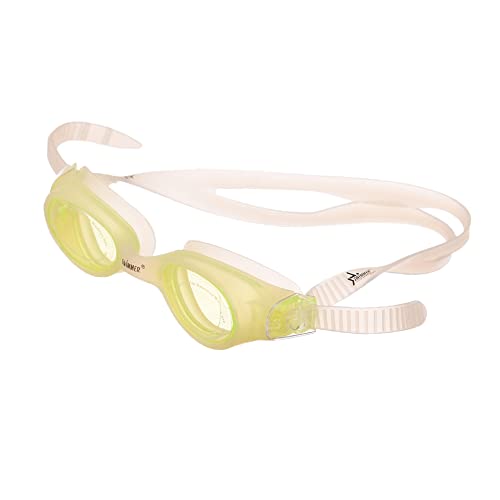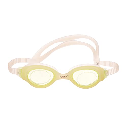 Generic - نظارة سباحة من السيليكون بتصميم حديث مضادة للضباب مع شريط سيليكون قوي، مناسبة للبالغين والاطفال - لون ابيض واصفر