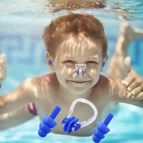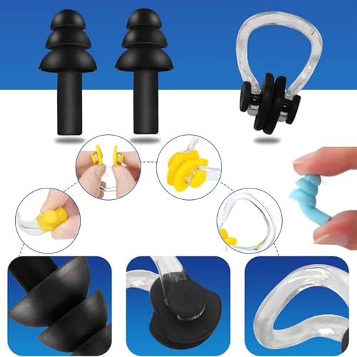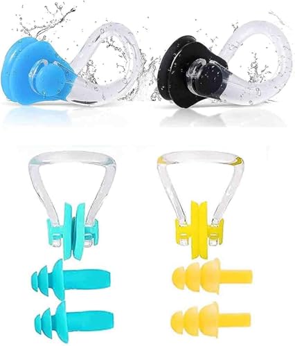 ZAZZCHi - طقم مشابك انف وسدادات اذن للسباحة - سيليكون مريح مقاوم للماء، متعدد الالوان - مثالي للبالغين والاطفال
