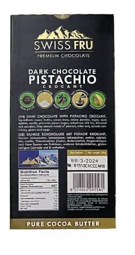 Swiss Fru - شوكولاتة غامقة فاخرة بالفستق كروكان من سويس فرو، 80 جرام