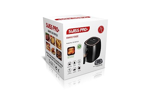 Swiss Pro+ - مقلاة هوائية رقمية لا تحتاج الدهون مصنوعة من الفولاذ المقاوم للصدأ بقدرة 1750 وات سويس برو بلس أسود سعة 7 لتر