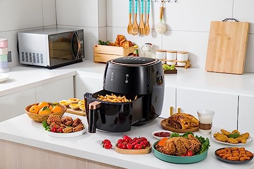 - سهلة التنظيف: يمكنك بسهولة إزالة سلة المقلاة الهوائية. تتميز بطلاء مانع للالتصاق وآمنة للغسل في غسالة الأطباق لتنظيف سريع وسهل