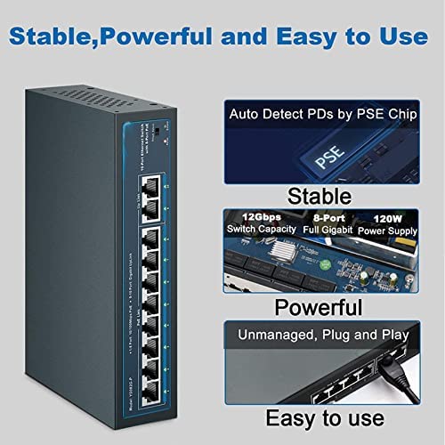 - 【مزود طاقة 120 واط】 يدعم IEEE 802.3af/at. بحد أقصى 120 واط، طاقة مدمجة، كل منفذ يصل إلى 30 واط