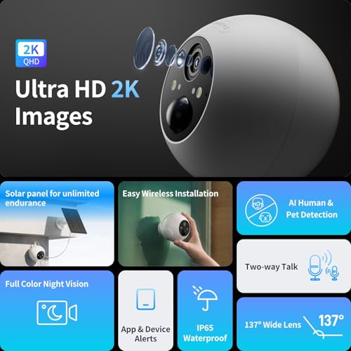 - كاميرا بدقة 2K، مع رؤية ليلية ملونة بالكامل: مصممة بعدسة متطورة بدقة 3 ميجابيكسل، تمنحك جودة صورة أوضح بنسبة 100% مقارنة بكاميرا 1080P العادية، مما يتيح لك التقاط أدق التفاصيل في الخارج أثناء المراقبة. كما تأتي الكاميرا الخاصة بنا أيضًا مزودة بلمبتين سبوت، مما يُمكّنك من التسجيل بالألوان حتى في ظروف الإضاءة الخافتة.