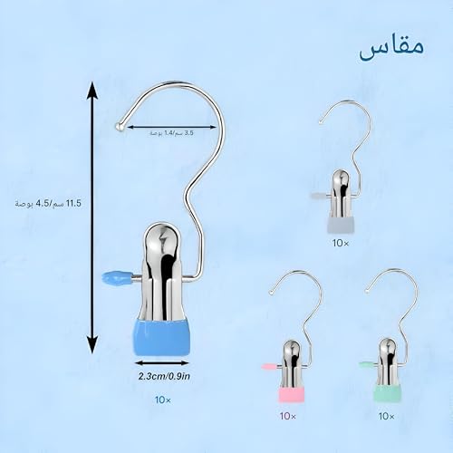 - تتضمن المجموعة شماعات بألوان زاهية لا تضفي البهجة على خزانة ملابسك فحسب، بل توفر أيضًا وظائف عملية. يبلغ قياس كل مشبك 4.5 بوصة ويزن 0.65 أونصة فقط، مما يجعلها سهلة الحمل للغاية للمسافرين وعشاق الأنشطة الخارجية الذين يحتاجون إلى حلول خفيفة الوزن لتنظيم ملابسهم أثناء التنقل.