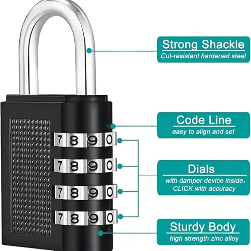 Swopply - قفل بأرقام مكون من 4 أرقام للأبواب والأمتعة والشنط الرياضية وصناديق الأدوات والدواليب والشنط، أقفال مقاومة للماء ومضادة للسرقة مصنوعة من خليط معدني من الزنك وقابلة لإعادة الضبط من سوبلي