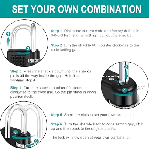 - سهل القفل والفتح:- قفل الأمان سهل الاستخدام، لذلك لا داعي للقلق بشأن إضاعة الوقت في عملية القفل والفتح المعقدة؛ ما عليك سوى ضبط الرموز الخاصة بك، وقم بتمرير عجلة الرمز إلى الرقم المحدد، ثم سيتم فتح القفل بسهولة وسرعة؛ كما يمكنك إعادة تعيين الرمز إذا كنت بحاجة إلى ذلك في أي وقت؛ لإغلاق القفل، فقط اضغط على القوس الموجود على القفل.