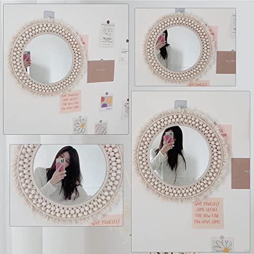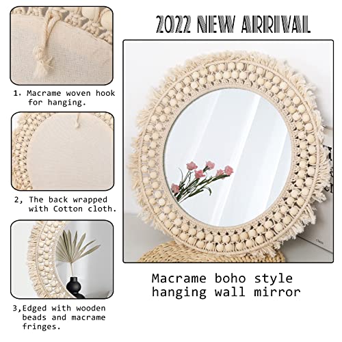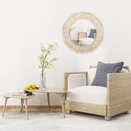 SWTHONY - مرآة بوهو دائرية معلقة مقاس 45.7 سم لتزيين الحائط من سوثوني، ديكور حائط فني بوهيمي، مرايا دائرية مكرمية للديكور لغرفة المعيشة وغرفة النوم والحضانة والمدخل