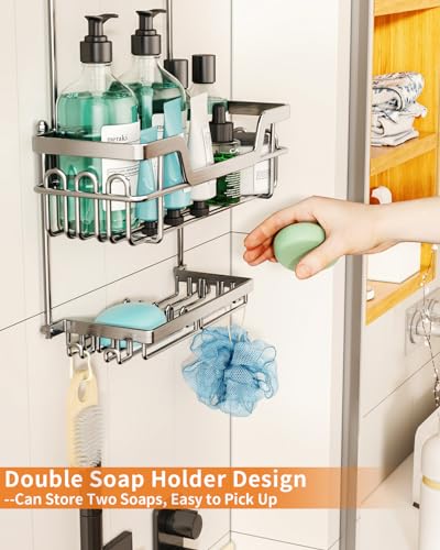 - [حامل صابون مزدوج و16 خطاف]: يأتي منظم رأس الدش الخاص بنا مع حامل صابون خاص يمكنه حمل ما يصل إلى لوحين من الصابون. بالإضافة إلى ذلك، 16 خطافًا متعدد الوظائف يجعل منظم دش الحمام به أماكن لتعليق الليفة والفوط واكسسوارات الاستحمام.