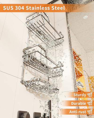 - [مقاوم للصدأ وسريع التصريف]: صُنع من هيكل مستقر ومادة الفولاذ المقاوم للصدأ، يوفر منظم الدش المعلق فوق رأس الدش لدينا متانة طويلة الأمد لتخزين موثوق به في الحمام.