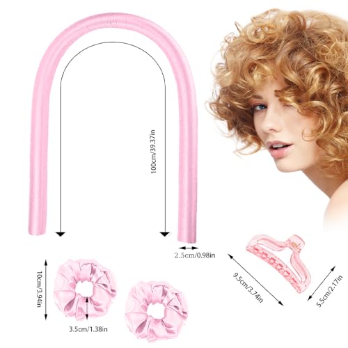 SXCCNW - طوق تجعيد غير حراري، طوقا تجعيد الشعر بدون حرارة، غير قابلين للانزلاق مع دبابيس تجعيد الشعر طوال الليل للشعر الطويل والمتوسط 100 × 3 سم، بلون أزرق ووردي