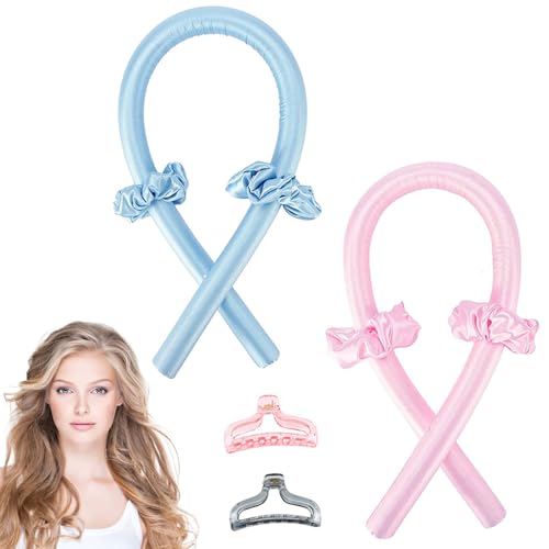 - محتويات العبوة: سوف تحصل على طوقي تجعيد مقاومين للحرارة غير قابلة للانزلاق مع مشبك شعر وحلقة شعر، اللون: أزرق، وردي، مقاس 100 × 3 سم لتلبية احتياجاتك اليومية
