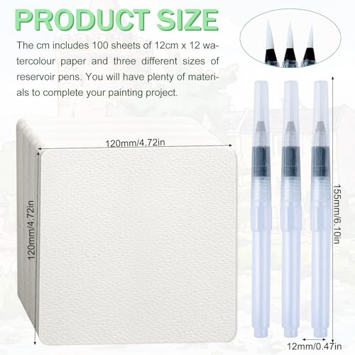 - تتضمن المجموعة: سوف تحصل على 100 ورقة من ورق الألوان المائية، مقاس 12 × 12 سم، سمك 300 غرام/متر مربع، قوة قوية، ليس من السهل تشويهها؛ و3 أقلام ألوان مائية مدببة