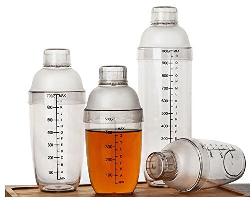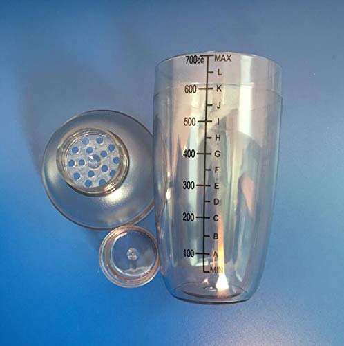 SYBL - زجاجة شيكر بلاستيك لخلط الكوكتيل مع غطاء قياس ومصفاة لتحضير مختلف المشروبات مثل الكوكتيلات والعصائر والشاي، تصميم مدرج للاستخدام المنزلي والحفلات والمناسبات من SYBL، سعة 710 مل