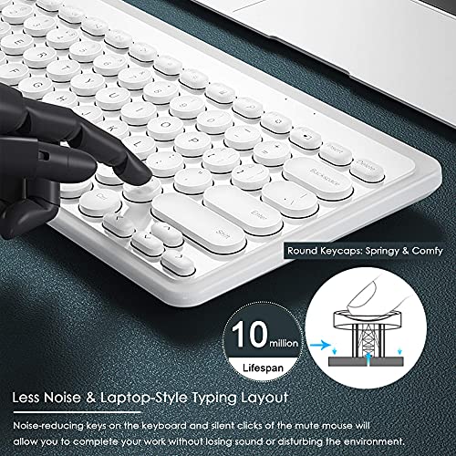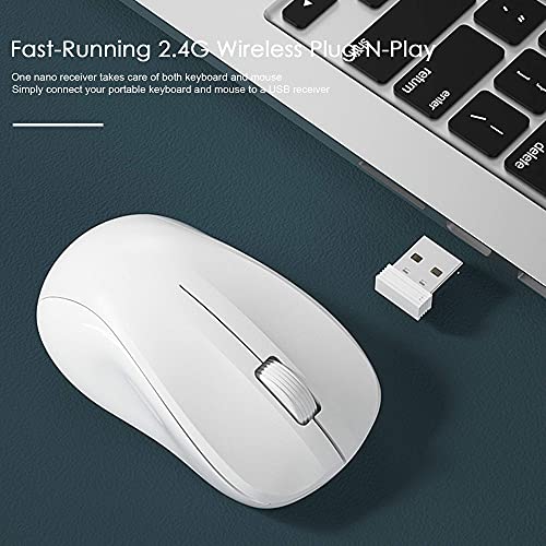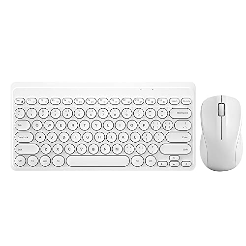 SYBS - لوحة مفاتيح وماوس لاسلكية أنيقة من SYBS ، مزودة بمفتاح USB لاسلكي لطيف وموفر للطاقة ، مجموعة رفيعة للغاية لأجهزة الكمبيوتر المحمول والكمبيوتر وسطح المكتب (أخضر تمساح) (أبيض لؤلؤي)