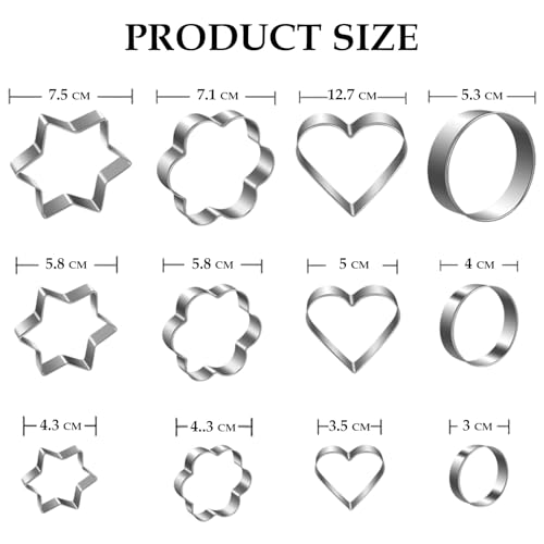 Syga - قطاعة بسكويت من الستانلس ستيل وبأشكال مختلفة من سايجا، 12 قطعة