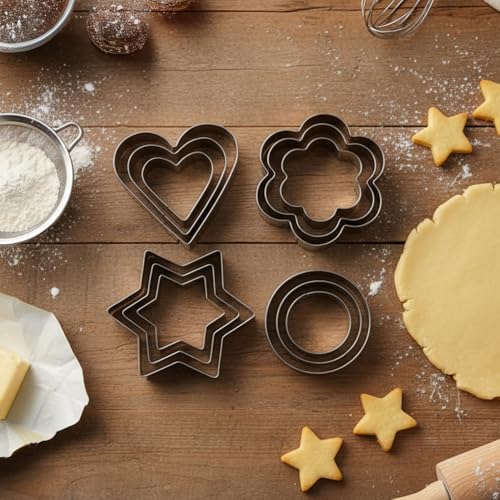 - 4 تصاميم من أشكال قواطع البسكويت: يحتوي الطقم على أشكال قلب ودائرة ونجمة وزهور كل شكل له 3 مقاسات أخرى تمكنك من صنع أحجام مختلفة من بسكويت الكوكيز المفضل لديك.