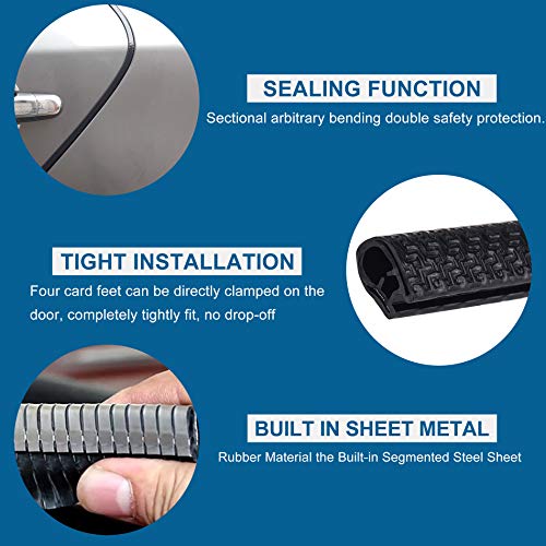 - تصميم على شكل حرف U ما عليك سوى الضغط على السدادة المطاطية على حافة باب السيارة ويمكنه إمساكه بإحكام وملائم تمامًا ولا يسقط ويحسن تقليل الضوضاء. ملاحظة: بعد القطع، يجب سحب القطع الفولاذية من الطرف الأول لمنع خدش هيكل السيارة.