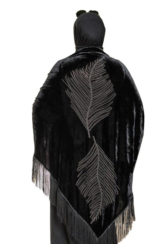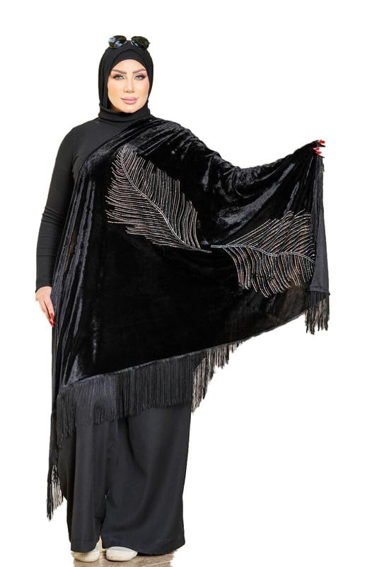 GAMAL SONS FOR ABAYA - شال قطيفه اسود استراس دهبي التصميم يتكون من وحدتين كبيرتين متناظرتين على شكل ريش طائر (Feathers) طويل وواضح GAMAL SONS FOR ABAYA GS-1704-34220-Parent