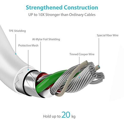 - متانة لا مثيل لها - غطاء من المطاط الحراري المرن الحاصل على براءة اختراع وتصميم داخلي من الألياف يتيح لكابل سينكواير Lightning غير القابل للكسر متانة استثنائية للانحناء 90 درجة لمدة 30000 مرة.