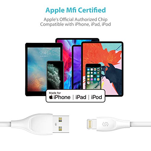 Syncwire - كابل مضيء سينكواير لشحن ايفون (معتمد من ابل) للشحن السريع، كابل مزامنة لايفون 11 XS وماكس وXR وX و8 بلس و7 بلس و6S و6 بلس وSE 5 وايباد وايبود- لون ابيض بطول 6 قدم- متين للغاية