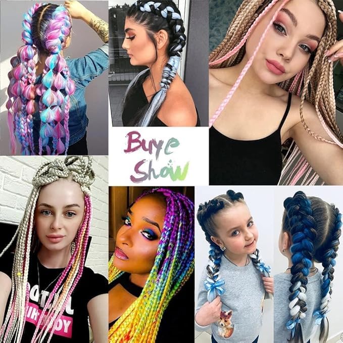 Generic - وصلات شعر صناعية مضفرة مقاومة للحرارة للتصفيف اليومي خفيفة الوزن ولامعة بمظهر طبيعي مناسبة للمبتدئين والمحترفين (موف)