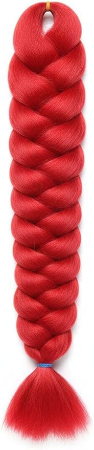Generic - وصلات شعر صناعية مضفرة مقاومة للحرارة للتصفيف اليومي خفيفة الوزن ولامعة بمظهر طبيعي مناسبة للمبتدئين والمحترفين (احمر)
