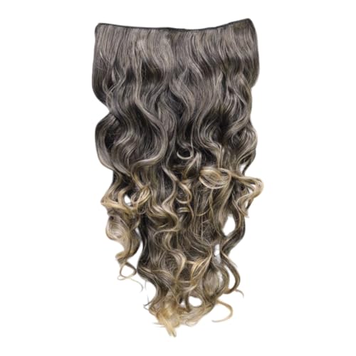 - جودة فاخرة: وصلة شعر صناعية فاخرة تتميز بملمس مموج طبيعي ونمط مذهل بلون رمادي أشقر متدرج