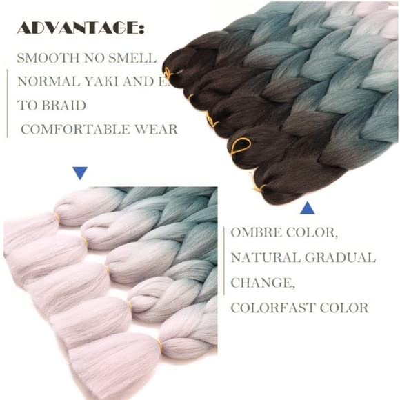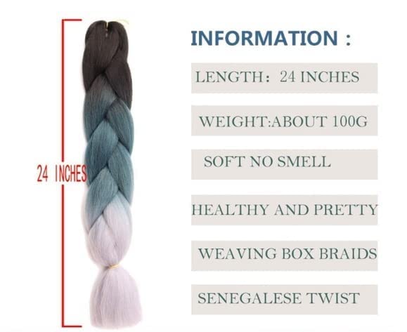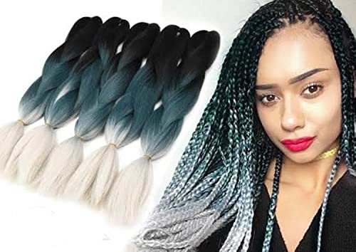 Generic - وصلات شعر مضفرة جامبو من الالياف الصناعية - حزمة 24 انش، اسود واخضر ورمادي