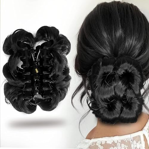Generic - كعكة شعر صناعي بمشبك، بني داكن، مشبك واحد بفورمتين بتصميم الكعكة، إكسسوار تصفيف الشعر