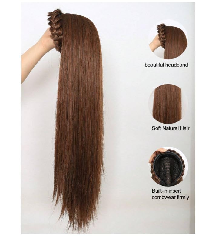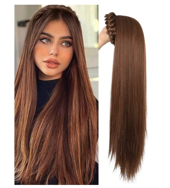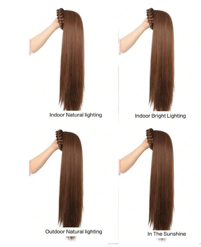 Generic - باروكة بشعر صناعي طويل وناعم مع مشبك للتثبيت، مع طوق شعر، باروكة شعر نصف مع رباط شعر منفوش بطول 50 سم - بني فاتح، JW218-N 10