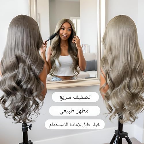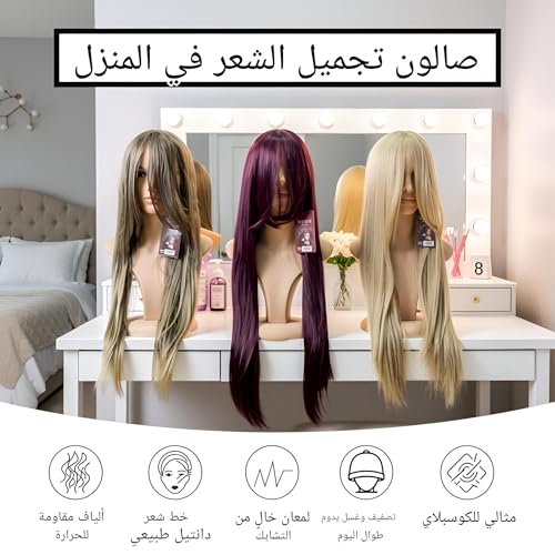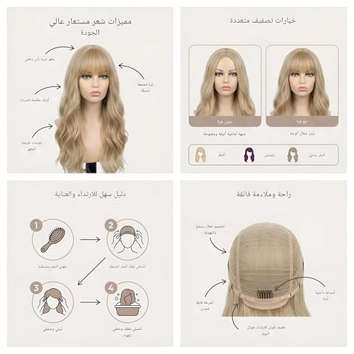 - شعر مستعار طويل للنساء مصنوع من شعر صناعي مقاوم للحرارة، مصمم للارتداء اليومي.