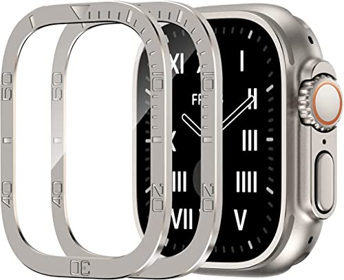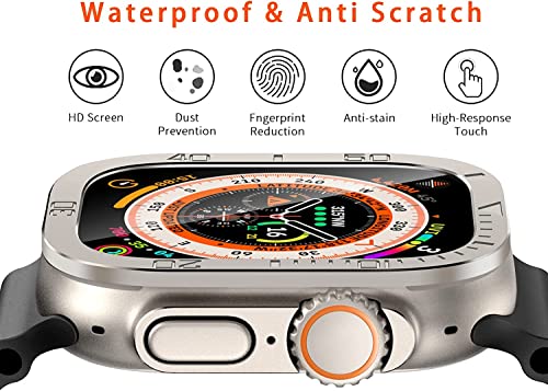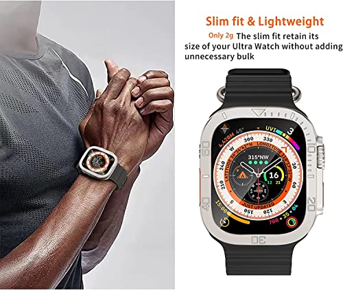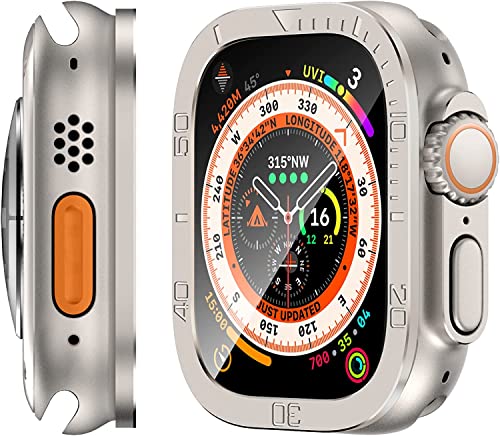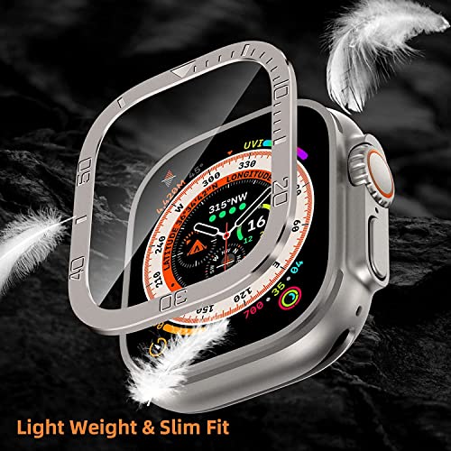 SYOSI - جراب معدن متين بلون تيتانيوم لساعة آبل الترا 49 ملم مع شاشة حماية من الزجاج المقوى ممتص صدمات واقي مقاوم للماء طبقة شفافة مدمجة اي ووتش عبوة قطعتين