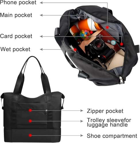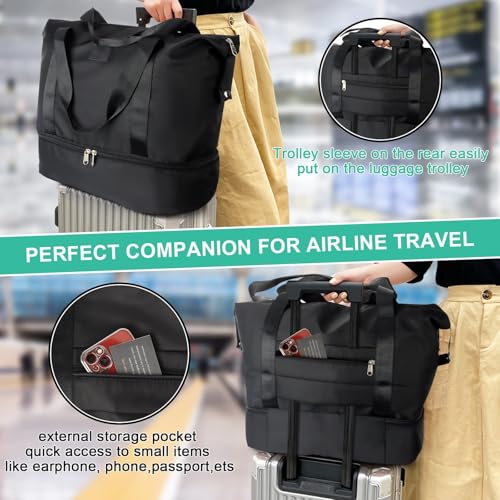 - 【حقيبة سفر صديقة للطائرة】بفضل الجزء الخلفي من حافظة العربة المدمجة، تنزلق بسهولة على مقبض الأمتعة المتدحرج مما يجعل السفر في المطار أمرًا سهلاً. حقيبة الصعود الليلية في عطلة نهاية الأسبوع للرياضة والرحلات القصيرة لمدة 3-4 أيام.
