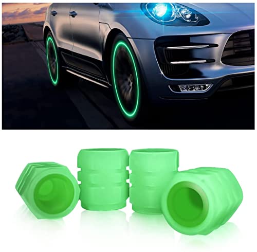 SYOSI - أغطية صمامات إطارات السيارة والشاحنة والموتوسيكل من سويسي، لون أخضر، 4 قطع تتوهج في الظلام، محكمة الغلق، مصنوعة من مادة بلاستيك ايه بي اس