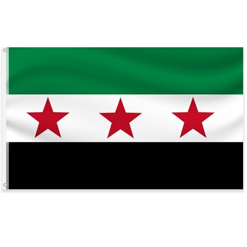 sesameless - علم سوريا، علم سوريا اخضر، علم سوريا الحرة الثورة السورية، راية جيش سوريا للديكور الداخلي والخارجي (3 × 5 قدم)