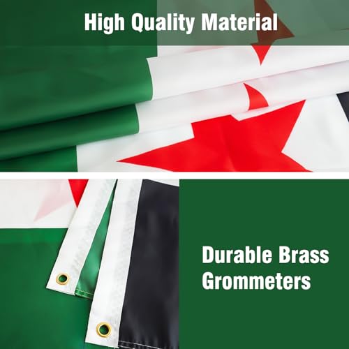 - 【مادة فاخرة】علم سوريا الأخضر هذا مصنوع من نسيج بوليستر متين، مصمم لتحمل جميع أنواع الطقس القاسي ومقاومة الأشعة فوق البنفسجية. ارفع علمك بفخر في المطر أو الثلج أو أشعة الشمس!